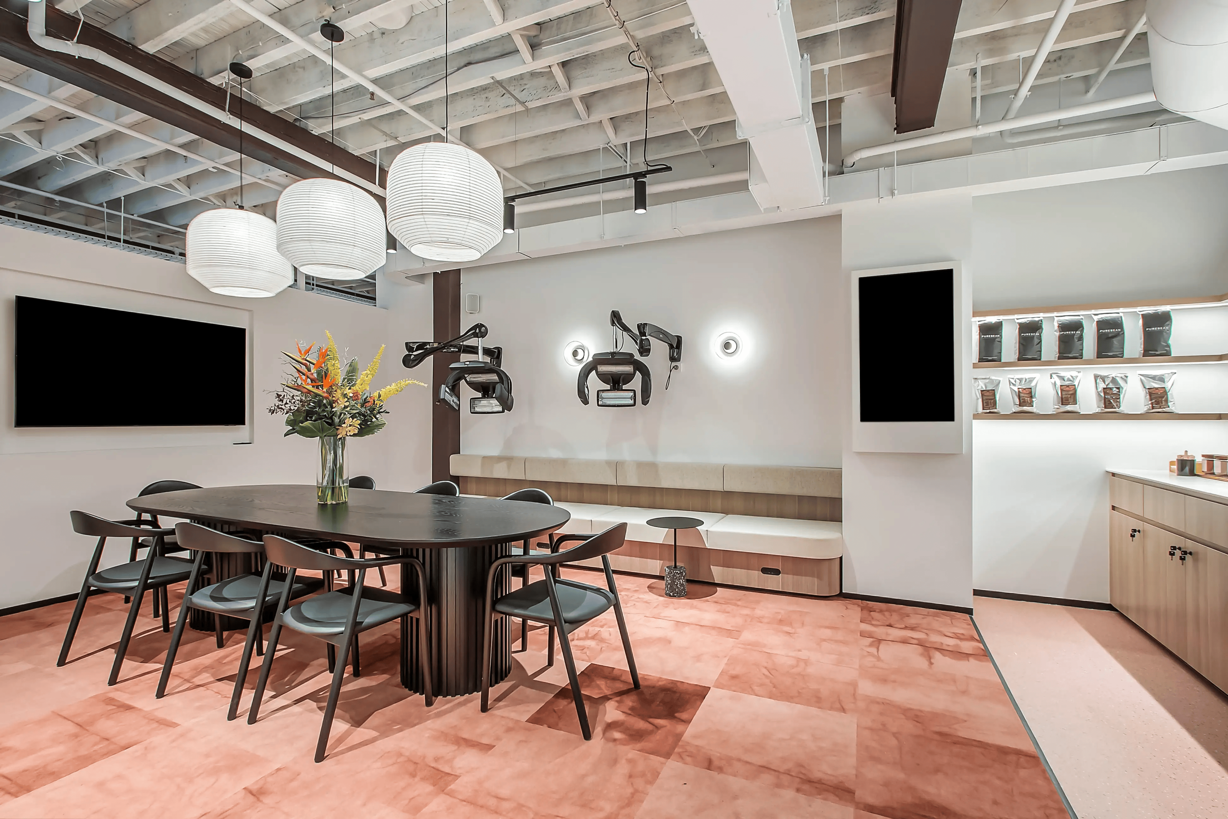 Once you reach the top of the stairs, turn left to find the client lounge to comfortably unwind before being greeted by your Hair Stylist (ready to work their magic!)